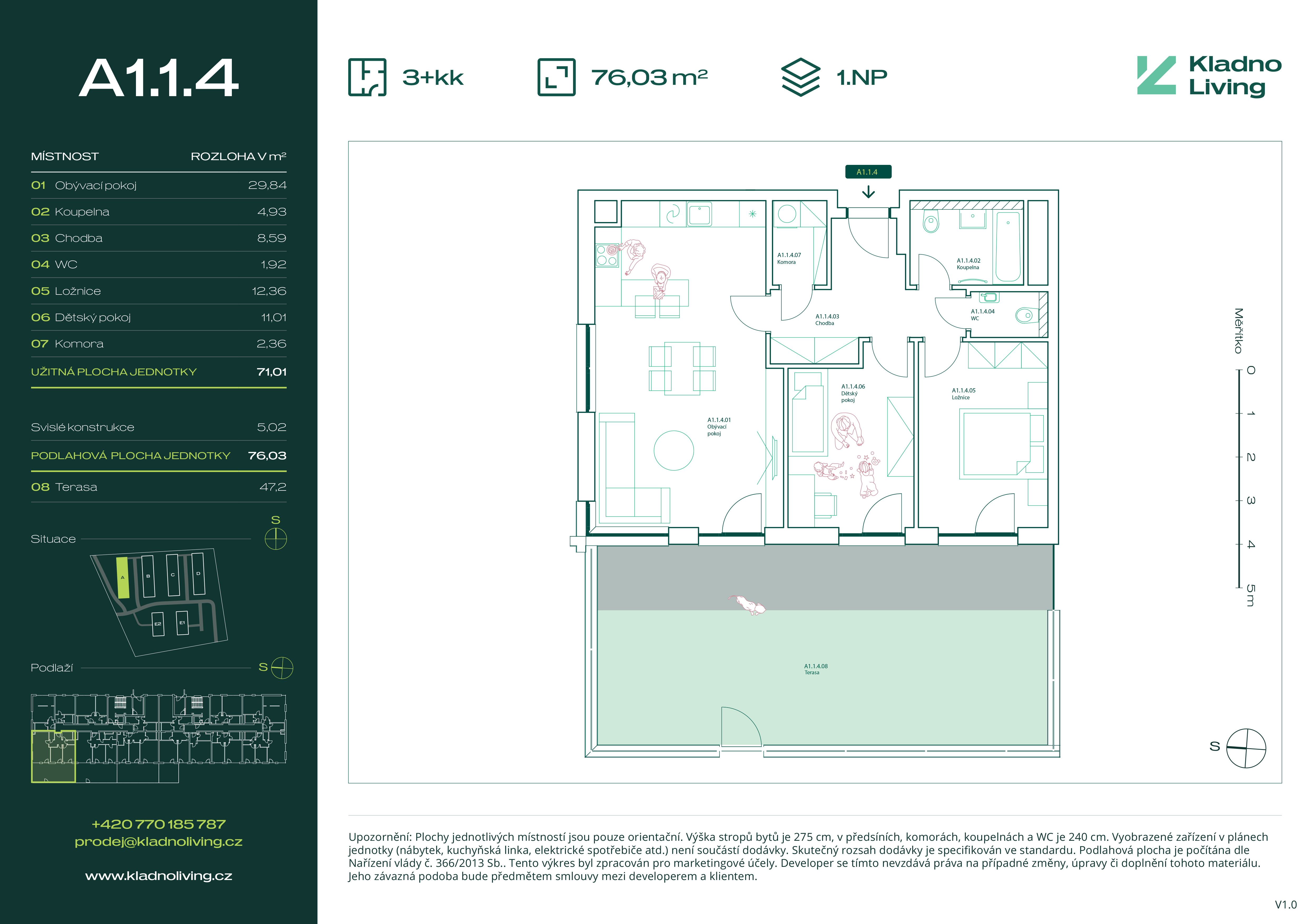 | KL-A114 | 3 + kitchenette | ground floor | 71 m2 | 76 m2 | 47 m2 / No / No | No | 7 980 000 CZK | Detail |