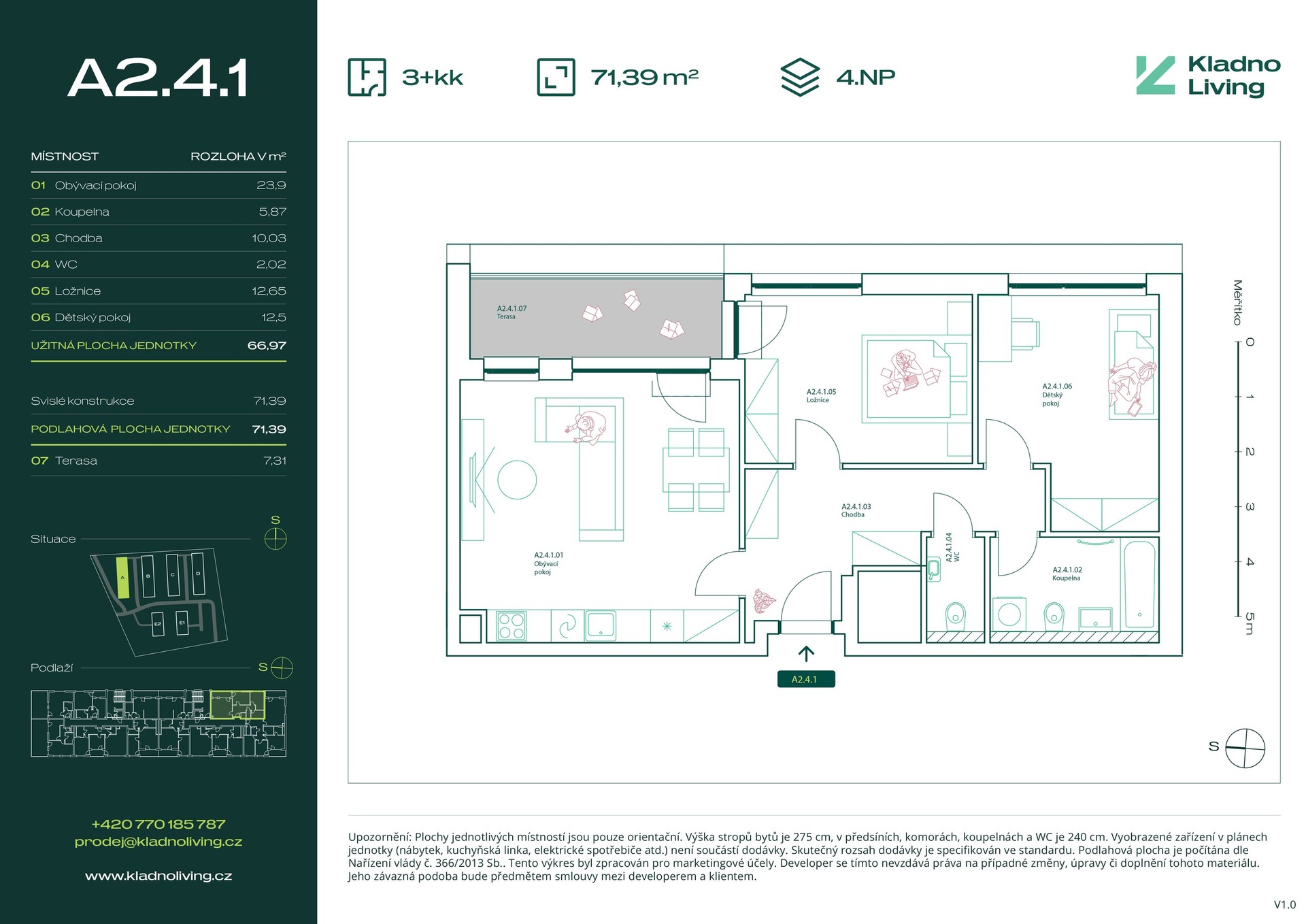 Sale of an apartment 3+kt/T, 71,4 sqm, in the Kladno Living residence, Kladno – Kročehlavy