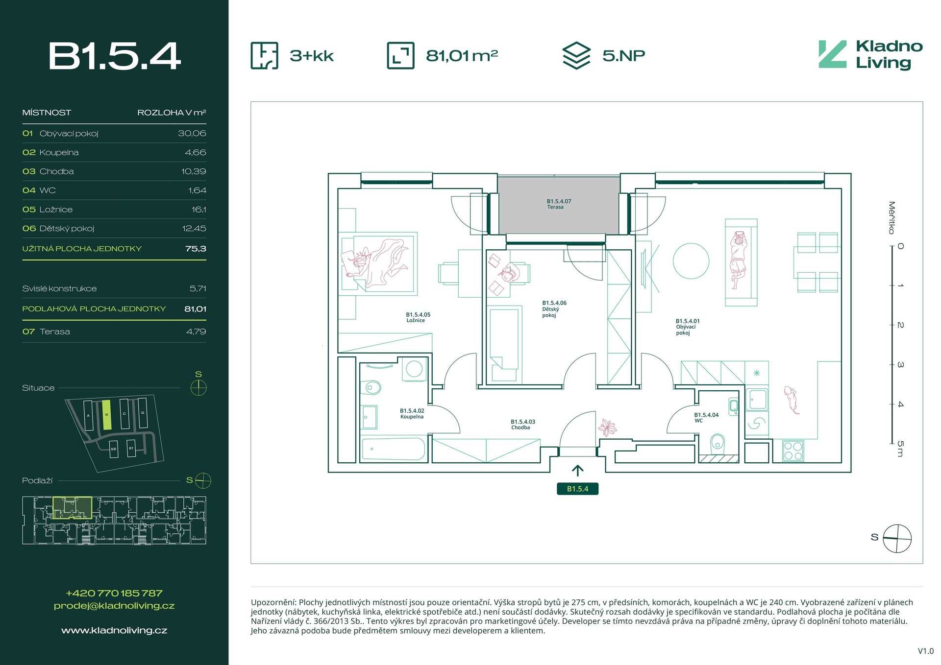 | KL-B154 | 3 + kitchenette | 4th floor | 75 m2 | 81 m2 | 5 m2 / No / No | No | 8 830 000 CZK | Detail |