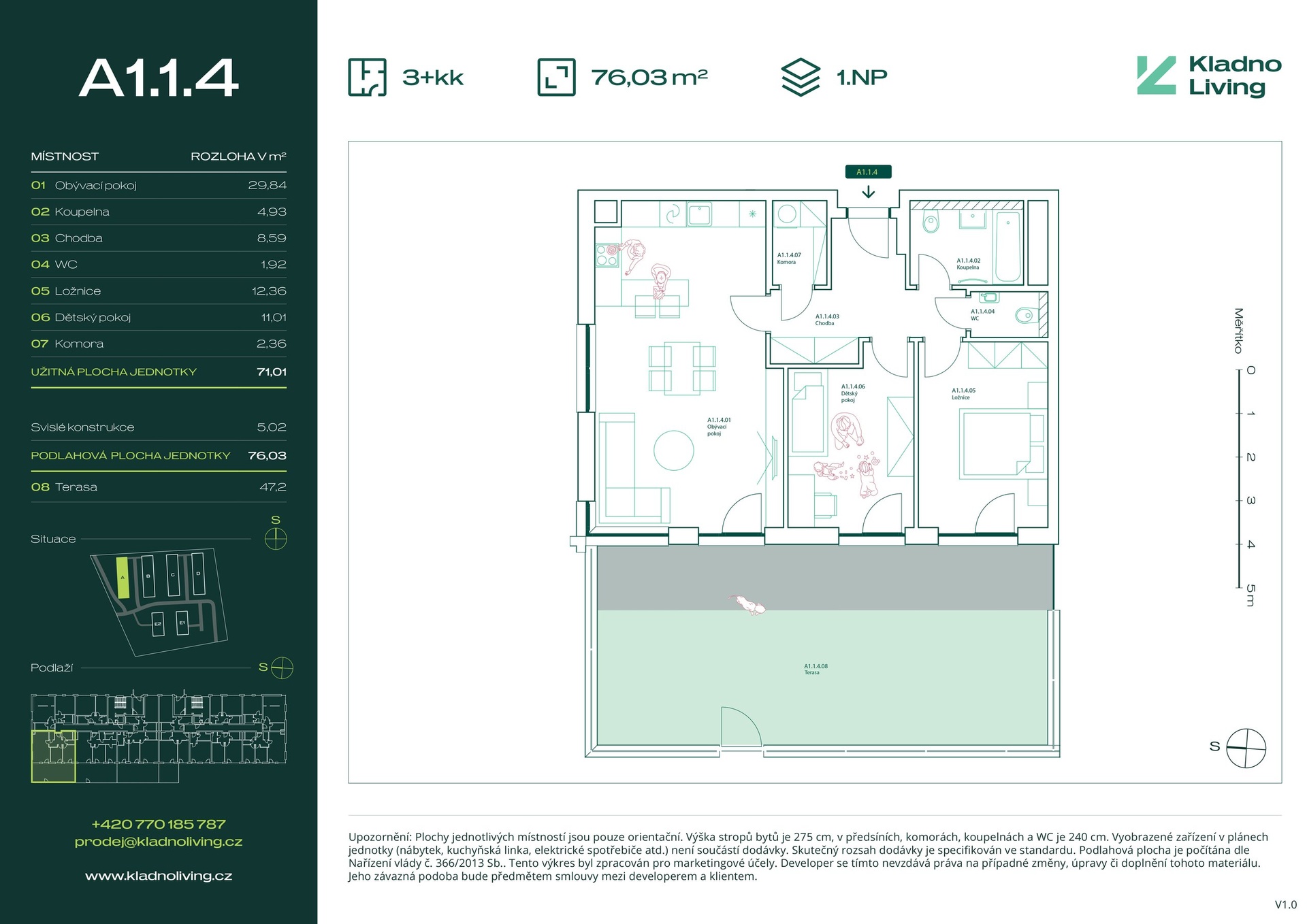 | KL-A114 | 3 + kitchenette | ground floor | 71 m2 | 76 m2 | 47 m2 / No / No | No | 7 980 000 CZK | Detail |