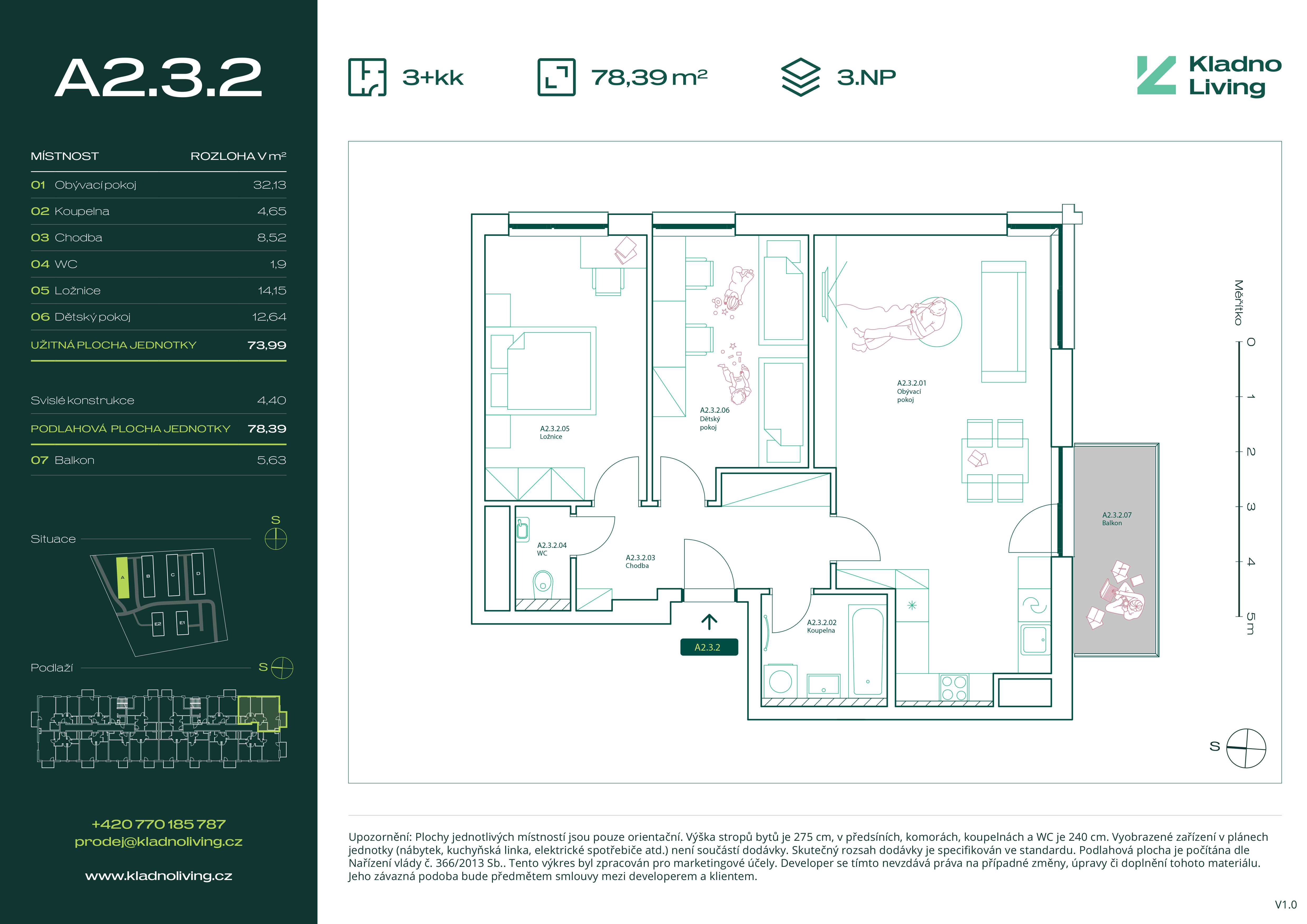 We are offering for sale a modern apartment 3+kt with a floor area of 78,3 sqm and a balcony of 5,6 sqm in the Kladno Living residential project, which is being built in one of the most attractive locations in the city of Kladno – Kročehlavy. This new development project represents a unique opportunity for those looking for new apartments in Kladno or an investment in real estate with high appreciation potential.