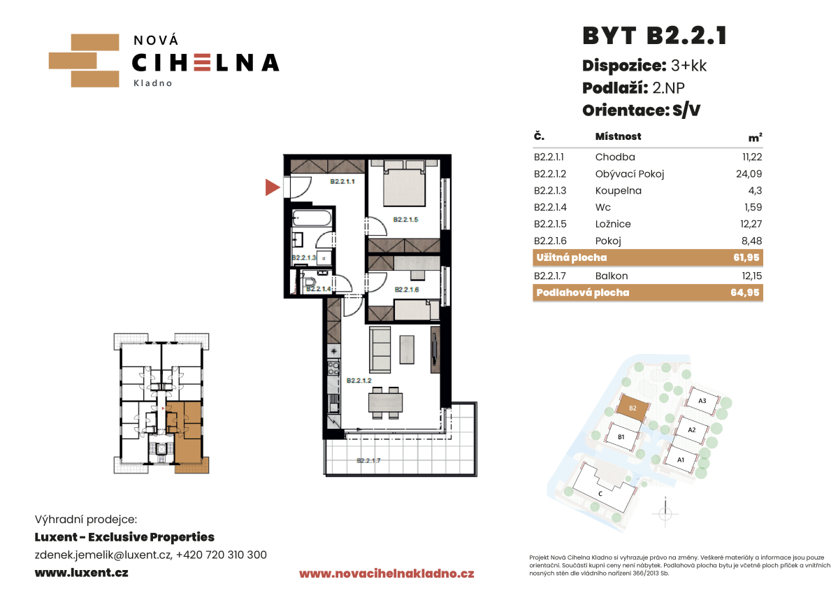 | NC-B124 | 3 + kitchenette | 1st floor | 62 m2 | 65 m2 | No / 12 m2 / No | No | Reserved | Detail |