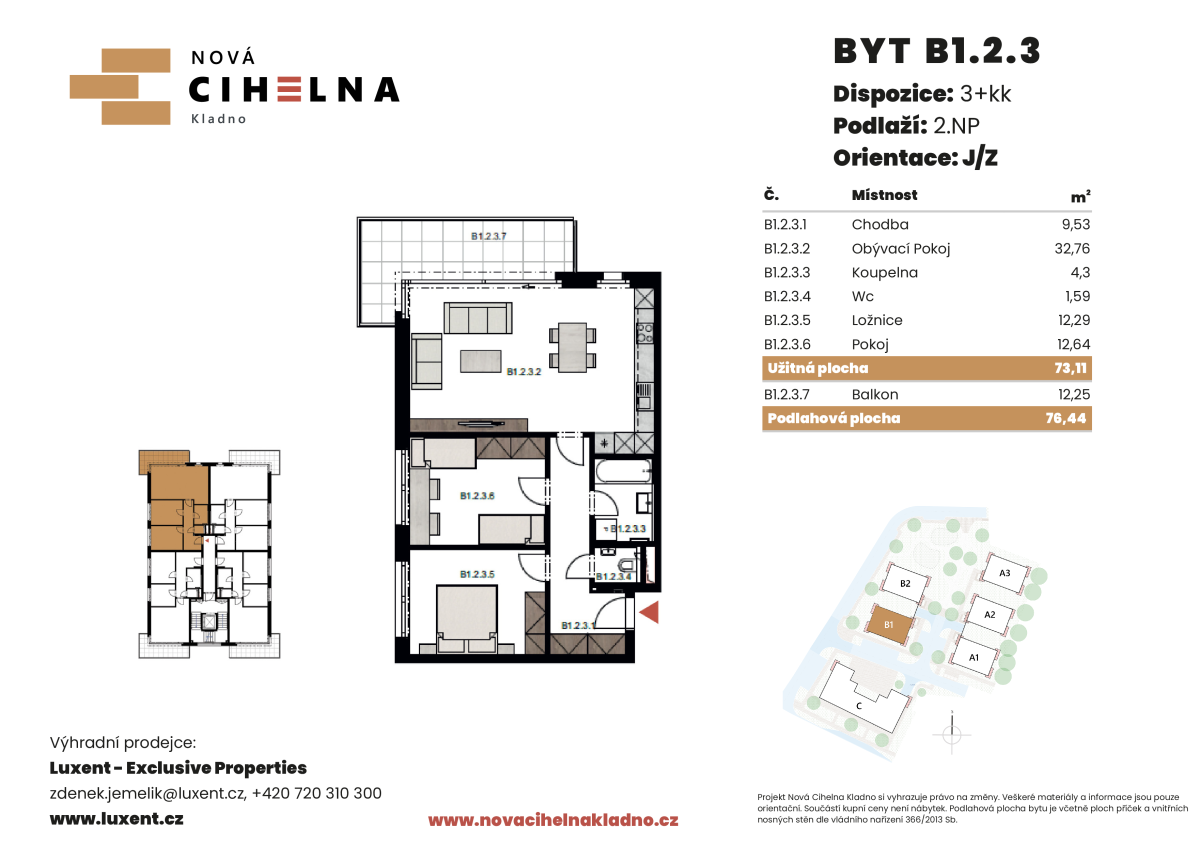 | NC-B123 | 3 + kitchenette | 1st floor | 73 m2 | 76 m2 | No / 12 m2 / No | No | Reserved | Detail |