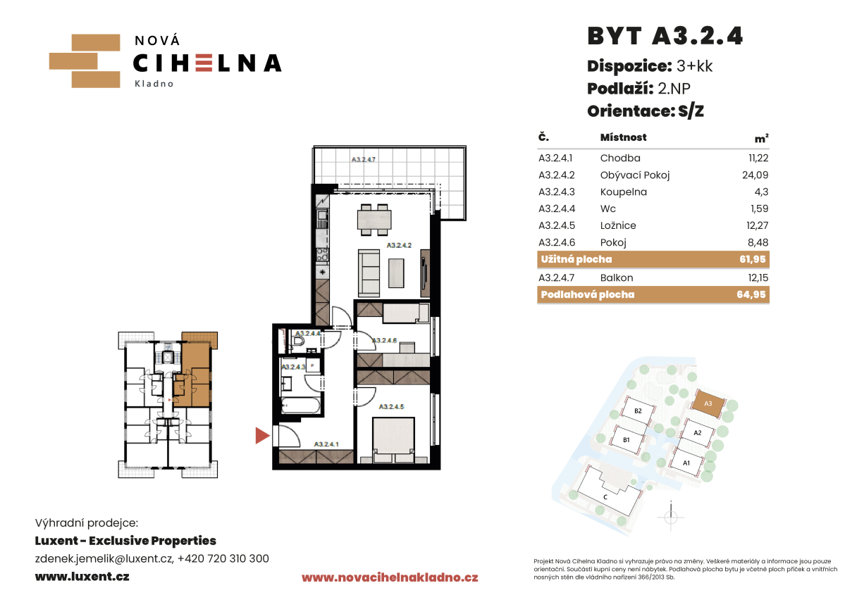| NC-A324 | 3 + kitchenette | 1st floor | 62 m2 | 65 m2 | No / 12 m2 / No | No | Reserved | Detail |