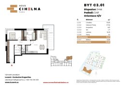 | NC-C201 | 3 + kitchenette | 1st floor | 71 m2 | 75 m2 | No / 13 m2 / No | No | Reserved | Detail |