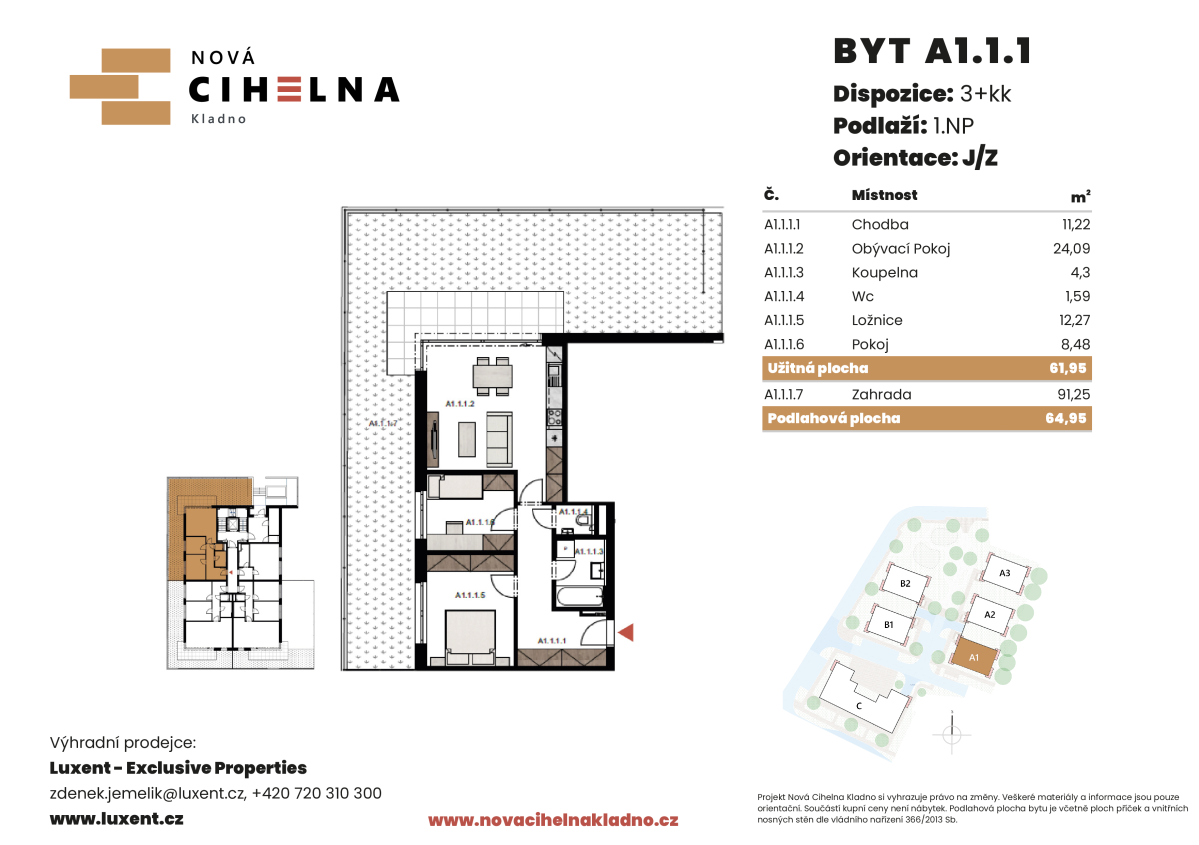 | NC-B111 | 3 + kitchenette | ground floor | 62 m2 | 65 m2 | No / No / No | Yes (92 m2) | Reserved | Detail |