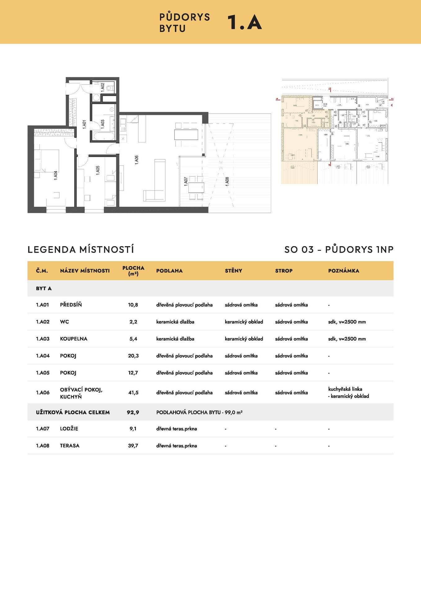 | NB-A1A | 3 + kitchenette | ground floor | 93 m2 | 99 m2 | 40 m2 / No / 9 m2 | No | Reserved | Detail |