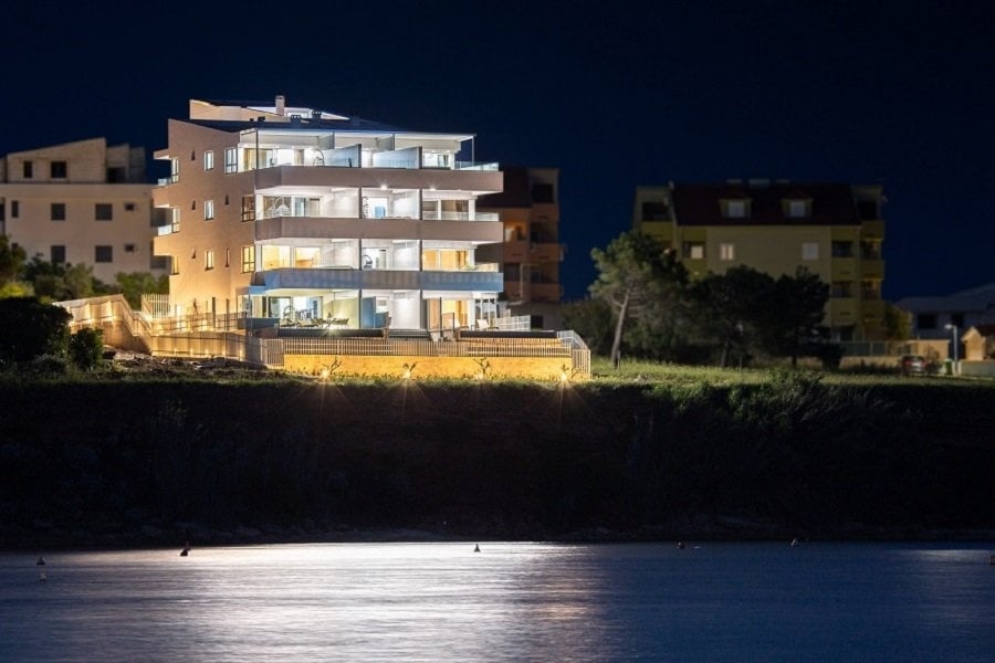 We offer for sale an exclusive two-story apartment in the first row by the sea on the picturesque island of Pag. This elegant apartment with a total living area of 120 sqm is part of a newly built residential project in the immediate vicinity of the beach, just 10 meters from the sea.