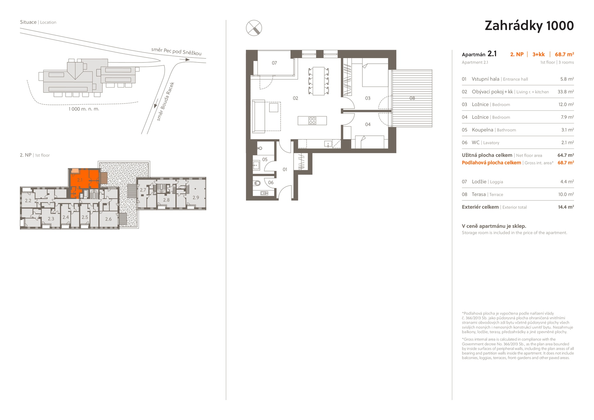 | Z2-1 | 3 + kitchenette | 1st floor | 65 m2 | 69 m2 | 10 m2 / No / 4 m2 | No | on request | Detail |