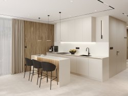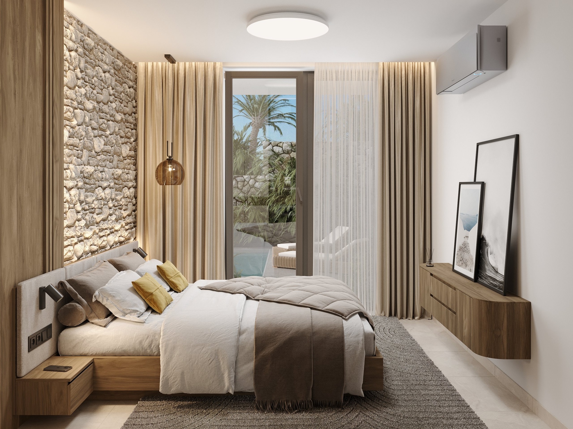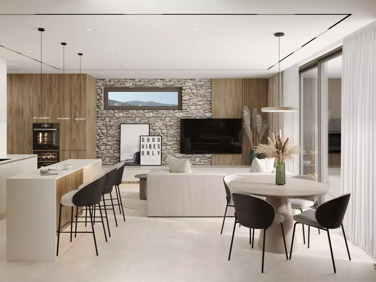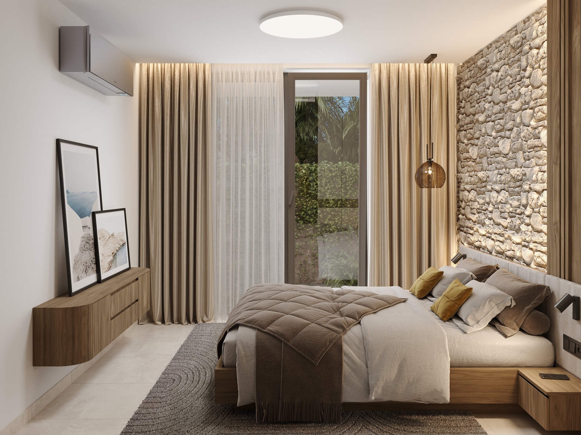 The 68 m² apartment offers 13 sqm of covered terraces, 69 sqm of uncovered terraces and gardens, a private swimming pool with an area of 23 sqm and technical facilities with an area of 28 sqm. The price also includes a parking space in the underground garage. The apartment is part of a new building with only three luxury units.