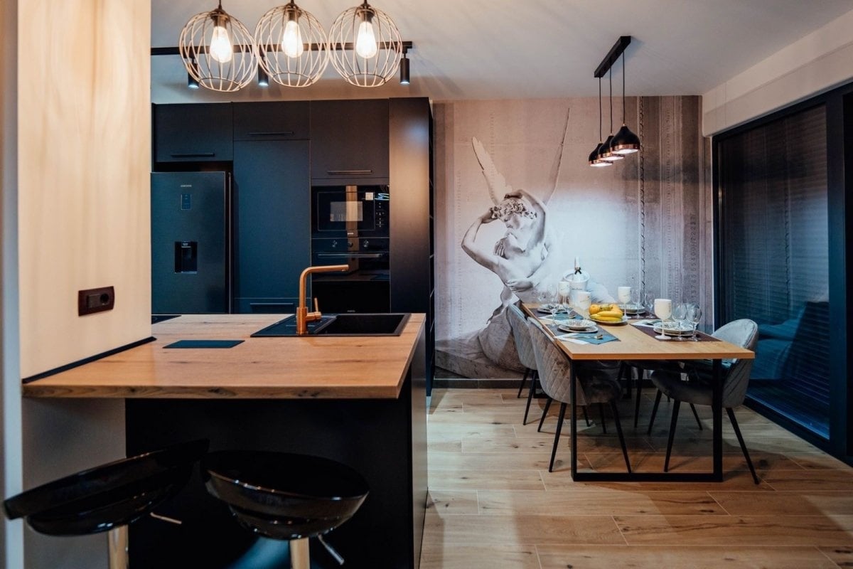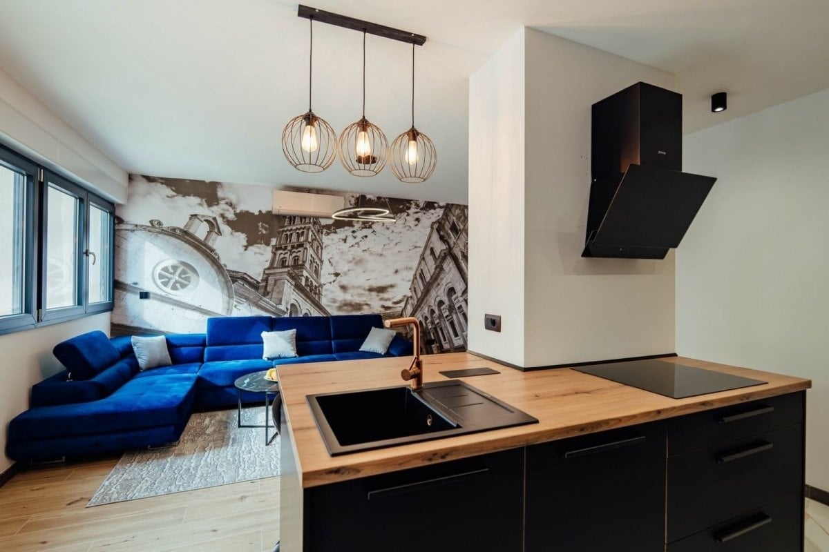 We are pleased to offer for sale this luxurious and fully furnished apartment with a terrace and optional garage parking, located in a sought-after residential area on the southern side of the city of Split, in Croatia’s picturesque Dalmatia region. Just 700 meters from the sea, the apartment offers 66 m² of living space, two bedrooms, two bathrooms, and a spacious living room seamlessly connected to a modern kitchen.