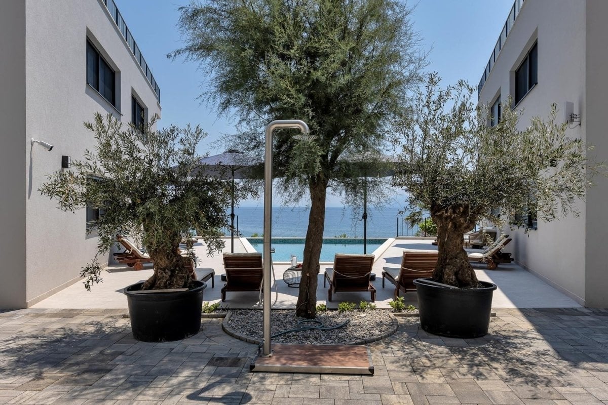 We offer for sale a modern apartment with breathtaking views in the first row by the sea. The property is located near the village of Sućuraj on the island of Hvar in Croatia. Thanks to its southern orientation and combination of comfort, elegant design, and modern Italian interior, it is the ideal place for a luxurious Mediterranean vacation.