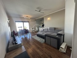 The apartment consists of an entrance hall, two spacious bedrooms, a living room with a dining area, a modern kitchen, a bathroom, and two toilets. The dominant feature is a large sunny terrace, ideal for relaxation or evening gatherings. The sale also includes a parking space and a separate storage room (not included in the stated floor area). The high-quality finish is complemented by windows made of a combination of aluminum, PVC, and wood, air conditioning, and a well-thought-out layout.