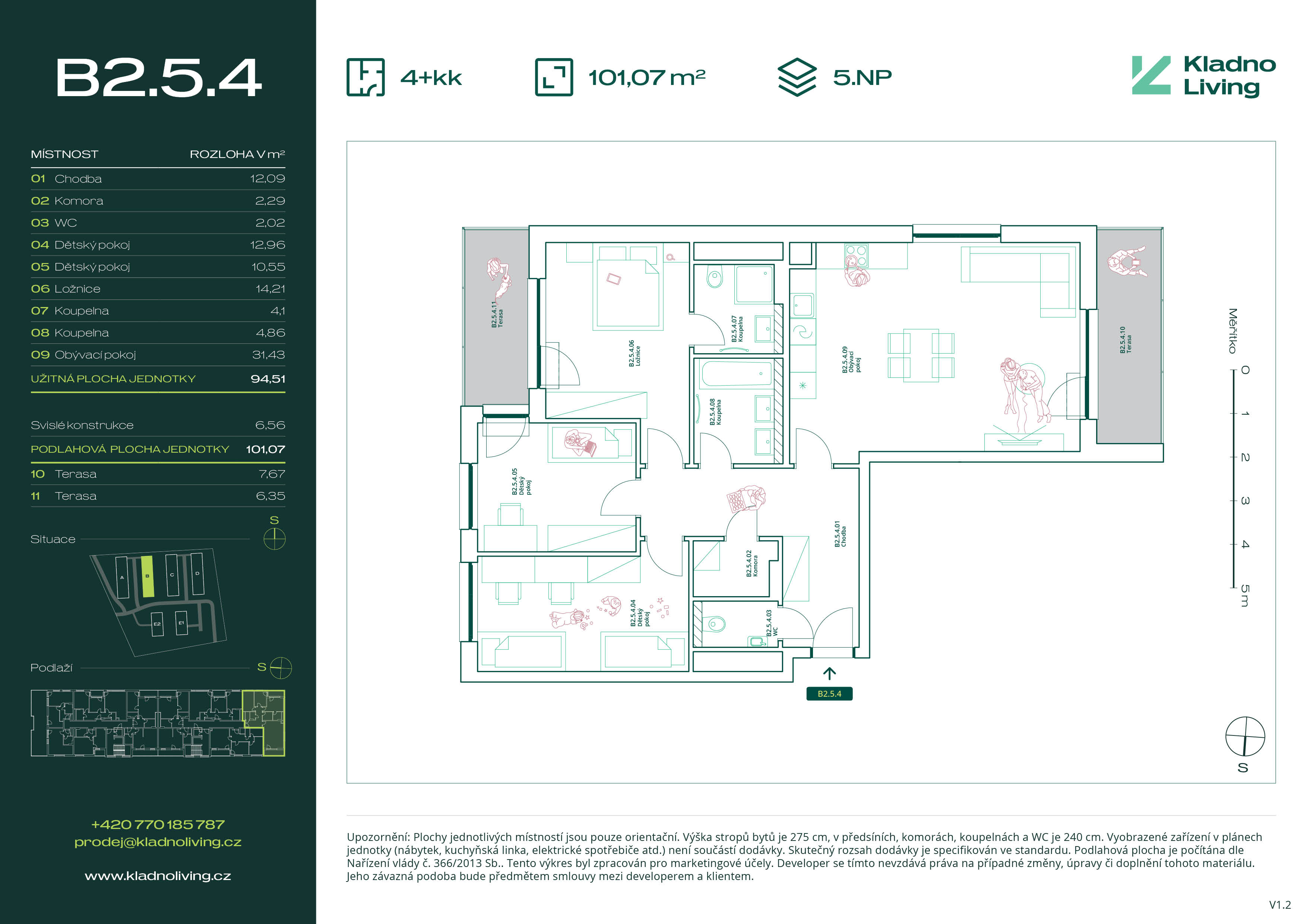 We are offering for sale a modern apartment 4+kt with a floor area of 101 sqm and two terraces total of 40 sqm in the Kladno Living residential project, which is being built in one of the most attractive locations in the city of Kladno – Kročehlavy. This new development project represents a unique opportunity for those looking for new apartments in Kladno or an investment in real estate with high appreciation potential.