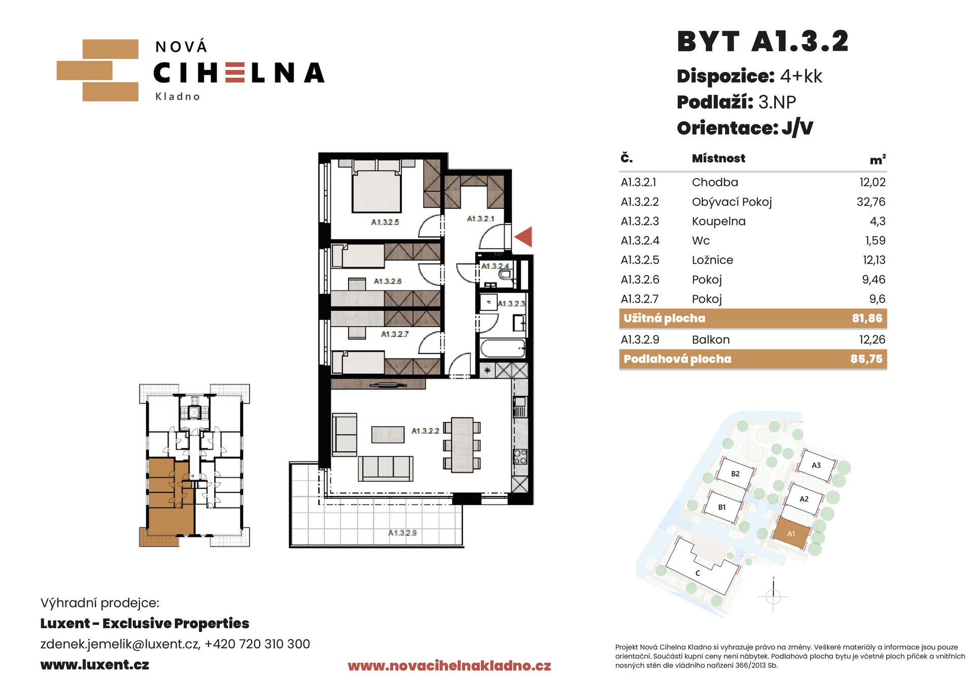 | NC-A323 | 3 + kitchenette | 1st floor | 73 m2 | 76 m2 | No / 12 m2 / No | No | Reserved | Detail |