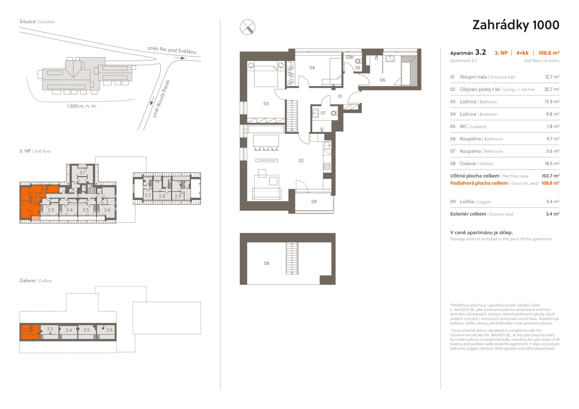 | Z3-2 | 4 + kitchenette | 2nd floor | 103 m2 | 109 m2 | No / No / 4 m2 | No | on request | Detail |