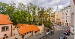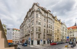 We offer a bright and spacious apartment 4+kt of 169 sqm. This apartment is situated on the third floor of an apartment building on the corner of Široká and Valentinská street. The house was designed by architect Richard Klenka, and is built in the spirit of modernity. Its buildings abound in a number of remarkable details and perfect craftsmanship.