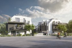 Anglerweg is an exclusive residential project of two apartment buildings with a total of 12 apartments. The project is built in a low-energy standard, thanks to a central heating system with its own central boiler house and a solar system on the roof, which brings a significant reduction in operating costs and an improvement in the ecological balance of the building. The insulated façade is covered with thin-film plaster, while the pitched roofs are covered with flat metal sheeting and a walking layer.