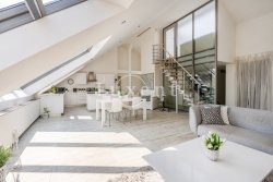 We offer for sale a generously designed, sunny 5+kt apartment with a floor area of 172 m² and three terraces (47 m²). This stylish loft apartment, designed by a renowned American architect from CMC Architects, spans the entire floor of an apartment building. Panoramic studio windows and the location of the terraces offer breathtaking views of Vyšehrad, Prague Castle, Petřín, and the surrounding rooftops.