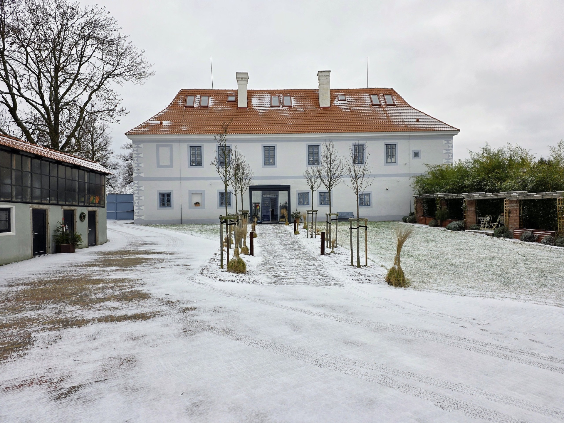 The former castle carriage house now serves as a spacious garage for four cars. Opposite it is the castle stable, converted into two separate boutique guest apartments, each with its own bathroom. There is also a separate toilet with a shower for visitors to the outdoor areas.