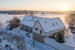 We offer for sale a stylish country house in Kvítkovice – 10 km from České Budějovice – in a landscape of forests and ponds on the edge of the Blanský Forest Nature Reserve. The house boasts stylish architecture, high-quality construction, modern technology, and low operating costs. The total usable area is 580 m². The 2,913 m² plot offers breathtaking views across green fields to the surrounding countryside and nearby ponds. Energy efficiency rating: B – very economical. The offer also includes a building permit for another building.