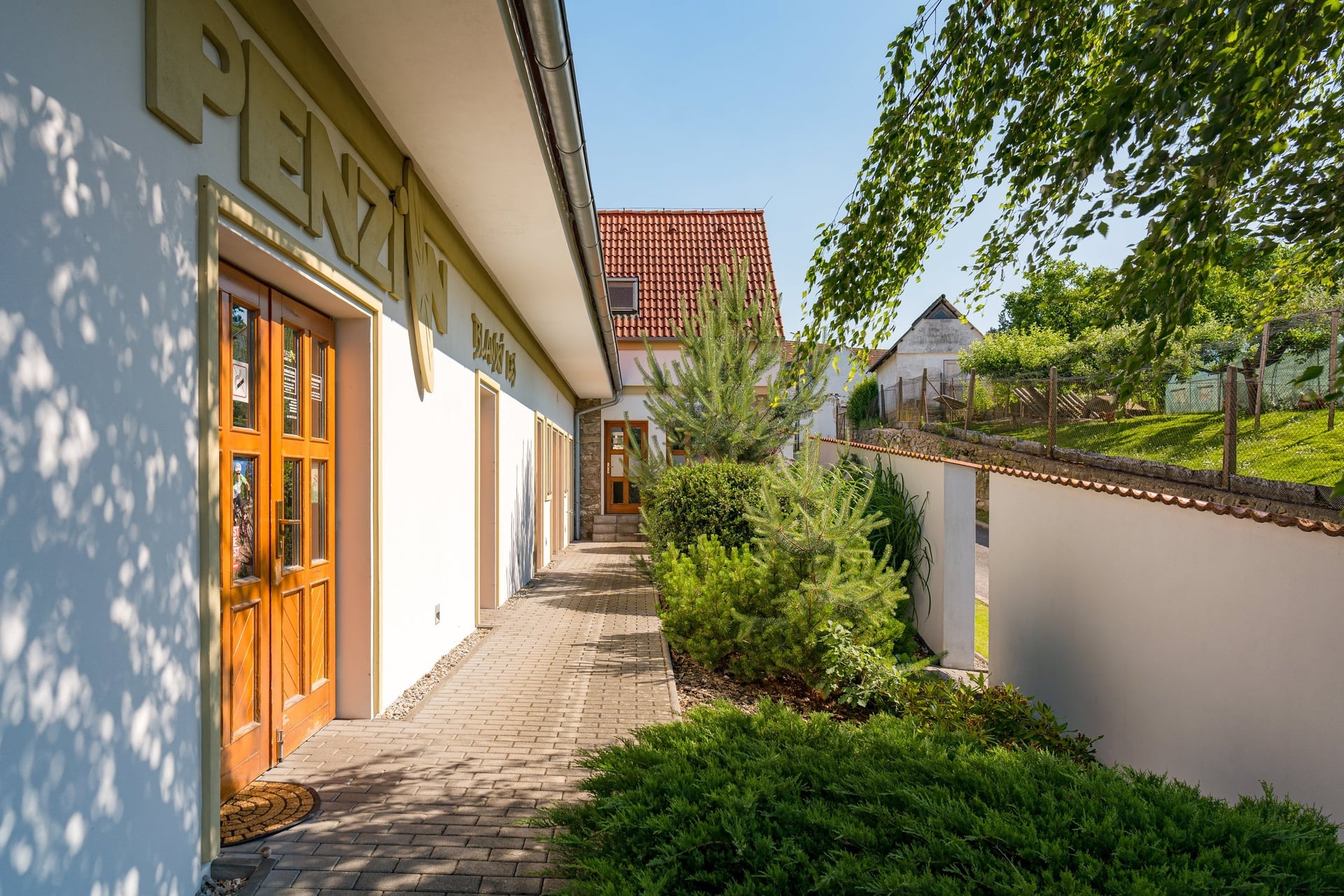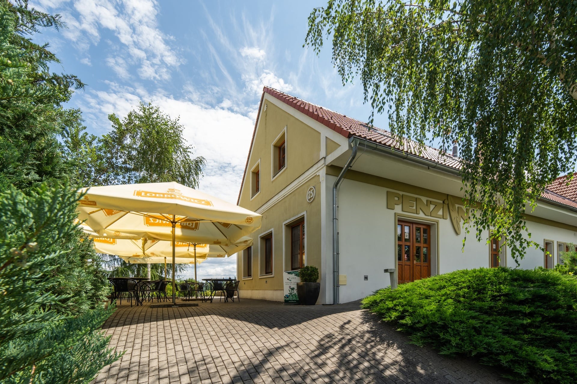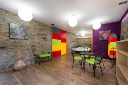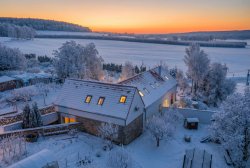 The house consists of two separate parts and has a capacity of 24 beds. The main part of the house has a restaurant with a bar, two types of kitchens, connecting corridors, technical and social facilities, and more on the first floor. On the second floor, there are five rooms, each with a bathroom, a spacious hallway, and a spiral staircase. In the second part of the property, there are two separate design studios, also with bathrooms and privacy. Each has its own electrical circuit and can be converted into an independent studio with a kitchenette or a designer maisonette. The lower studio has an 18 m² terrace and is prepared for a sauna. A classic fireplace can be installed on both the first and second floors. Without any modifications, the property could become a practical investment for business use.