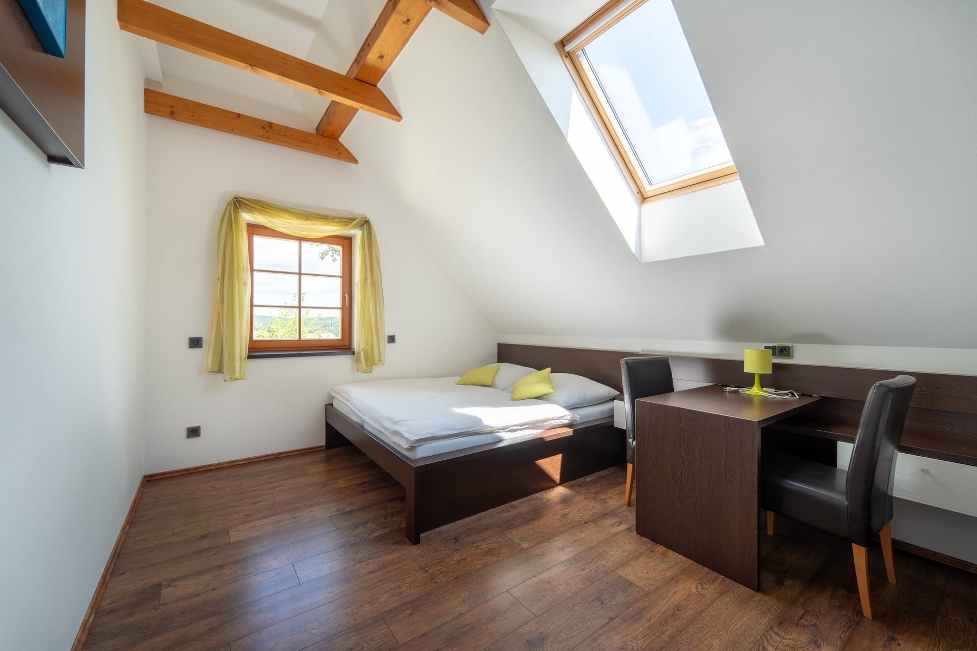 The advantages of the location are clean nature with forests and ponds, complete peace and quiet, and countless opportunities for active relaxation. Budějovice and the D3 motorway are just a few minutes away. There are many hiking and cycling trails in the immediate vicinity. The location is very lucrative from a business point of view – Golf Hluboká is 14 km away, Holašovice is 6 km away, and Český Krumlov, a UNESCO World Heritage Site with a rich cultural program throughout the year, is 30 km away. All amenities for modern living are available in nearby Budějovice – 14 km to the city center – and nearby Dubné (3 km) with a primary school, kindergarten, doctor, and shops.
