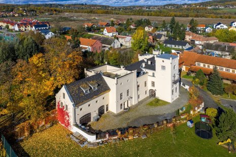 The building underwent a complete renovation in 2007. This was followed by another thorough renovation of all rooms and the facade in 2021. All construction work, installations, and equipment meet the latest standards and requirements for modern commercial operations. The castle is equipped with the most efficient heating system based on air-to-water heat pumps. In case of emergencies or extremely low temperatures, backup electric boilers are available. The highest quality materials were used in the renovation to ensure long life and easy maintenance with an emphasis on aesthetic perfection. Oak parquet, ceramic tiles, authentic brick paving, solid rustic wooden planks and vinyl flooring (in maintenance areas), premium Bath Deluxe sanitary ware and accessories, custom-made lighting, chandeliers from the world-famous Wranovsky workshop, Spanish Mantra lighting fixtures, furniture from the iconic manufacturer TON and the Danish brand BoConcept, all create a perfect harmony between traditional craftsmanship and modern Scandinavian design. The kitchens are equipped with appliances from renowned brands Redfox and Electrolux, guaranteeing reliability and long-term durability. The property is connected to a security camera system. Strategic location and transport accessibility The castle is located on the very edge of the picturesque village of Trnová, just a few minutes from the border of the capital city of Prague. The proximity of Prague ensures a steady stream of potential