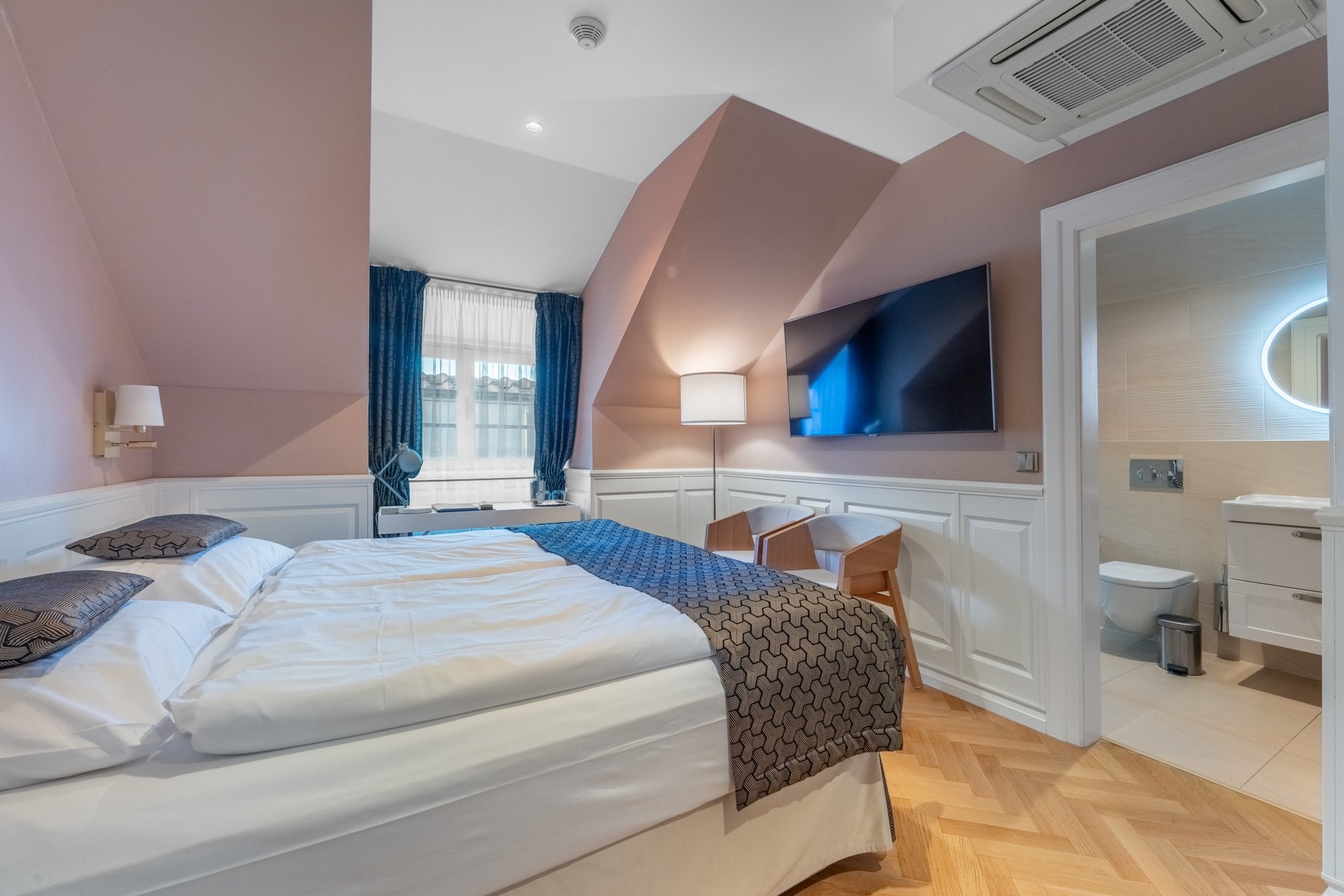 The castle offers accommodation in ten rooms (one Tower Suite apartment has two bedrooms above each other) with a total capacity of 22 beds. Six rooms have the option of an extra bed for up to two people, which further increases the total capacity. If necessary, it is possible to cooperate with the adjacent guesthouse (26 beds). Parking is provided on the premises, in the garage, and at the Trnovo church on private property for owners, staff, and visitors. A total of 27 parking spaces: garage (37 m²) for 4 cars, grounds for at least 8 cars, private parking for 18 cars).