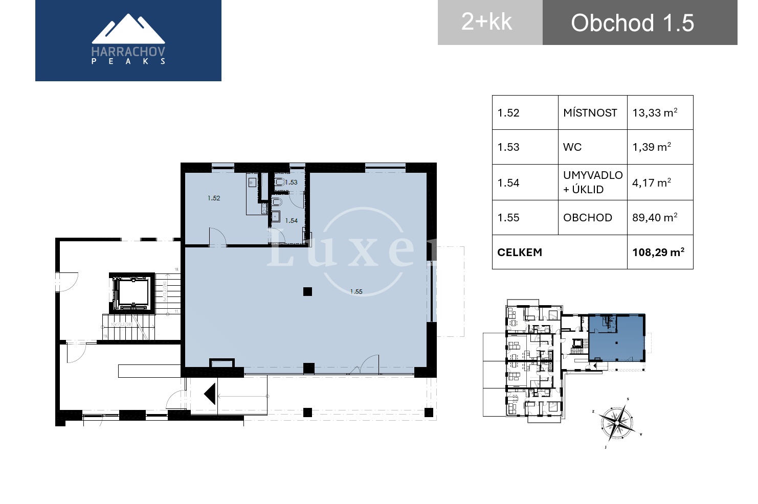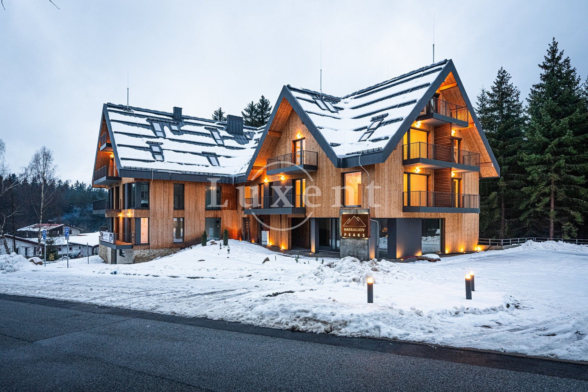 We offer a stylish fully glazed commercial space in the Harrachov Peaks project - with access from the street and within walking distance to the centre of Harrachov. The luxury project has 16 apartments with views of the slopes of the Black Mountains, a spa with sauna and jacuzzi and a fully equipped fitness room. Commercial space is located in the larger part of 1. NP with access from the street, to which the space is fully glazed and visible from the main Harrachov driveway, just slightly away and in pleasant immediate green surroundings. Directly below the project is the popular Harrachov restaurant Terassa. The usable area of the space is 108.3 m2 and most of it is now open space, in the rear there is a small office with sanitary facilities (see attached plan). The space is ideally suited for sales activities, possibly for a café with fresh snacks (in which case appropriate modifications are required) and more. For more information, please contact our office.