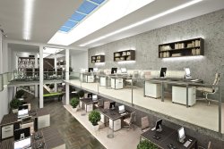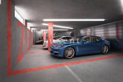 In addition to this property, there is a newly built underground space with direct outdoor lighting with a usable area of 433 m². These underground spaces are connected by a corridor to the water tower. On the property is also built a garage building of 158 m² for 8 cars. The garage has three separate entrances to the street. In the southern part of the garage building there is a security facility also with direct access from the street to the underground centre. The tower, underground space and garage are in shell and core condition.