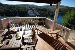 Each floor is designed as a separate apartment. On the ground floor, there is a one-bedroom apartment with an open-plan living area that includes a kitchen, dining room, and living room, as well as a bathroom and private terrace. The first floor consists of a two-bedroom apartment with a kitchen, dining room, living room, bathroom, and terraces with beautiful sea views. The second floor offers another two-room apartment with spacious terraces and breathtaking views of the sea panorama.