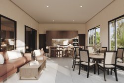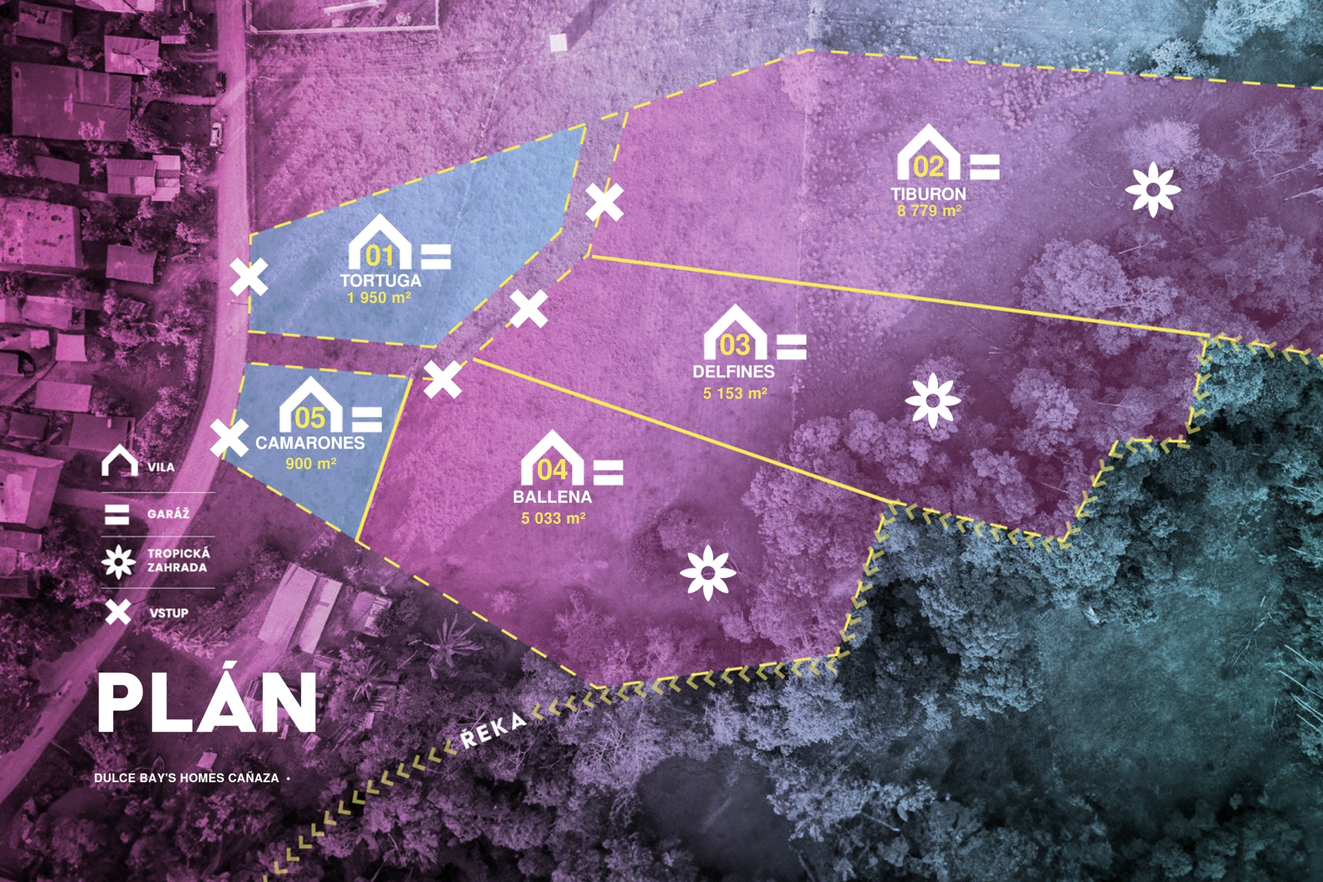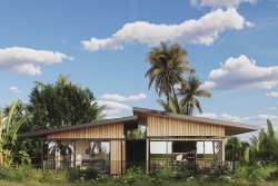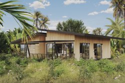 Villa Delfines stands on a plot of 5,153 sqm, the usable area of the house is 144 sqm and the layout is 3+kt. The living area with terrace is separated from the bedrooms and bathroom by an entrance hall. Wood and ceramic tiles are standard in the interiors and it is possible to choose superior tropical woods. Special roofs protect against rain and sun while not obstructing unobstructed views of the tropical garden. The roofs can also be supplemented with solar panels for even greater self-sufficiency. The plots of each villa have abundant springs and contain good quality fertile soil and are sensitively separated from each other, offering complete privacy.