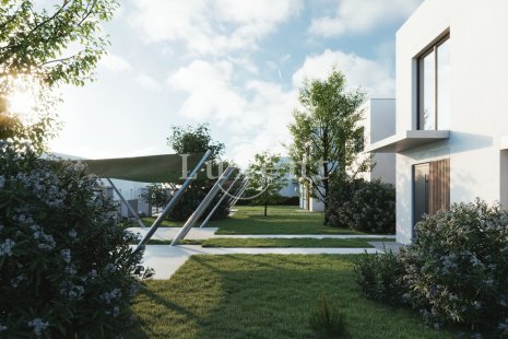 On the ground floor there is a practical entrance hall with cloakroom, storage room, toilet with tech. room, pantry under the stairs and a large living room massively glazed to the garden. Upstairs there is then a master bedroom, two bedrooms and a bathroom. The corridor above the stairs is pleasantly illuminated by a skylight. See attached floor plans for more details. On the floors there is quality laminate floating flooring (decor according to the house) and ceramic tiles. Bathroom equipment: Villeroy & Boch.