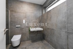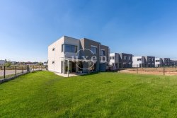 On the ground floor there is a hall, bathroom, laundry room, tech. room and then a living room pleasantly glazed to the garden and terrace. There is also an integrated garage with preparation for a charging station. Upstairs there is then a master bedroom with en-suite bathroom and dressing room, two children's bedrooms with a second bathroom and a storage room. The corridor above the staircase is illuminated by a skylight with preparation for electric drive. See attached floor plans for more details. On the floors there is quality laminate floating flooring (decor according to the house) and ceramic tiles. Bathroom equipment: Villeroy & Boch.