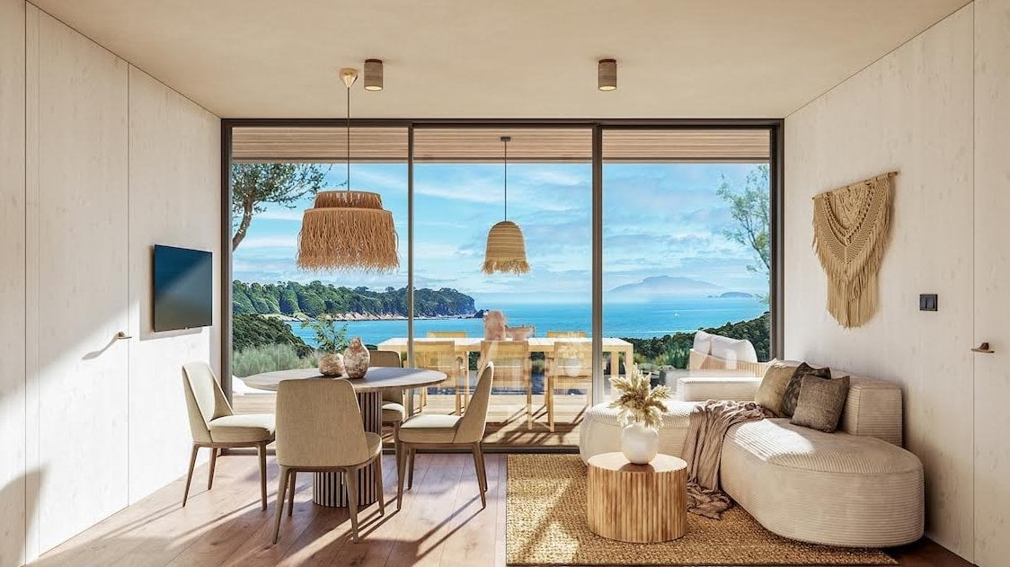 The resort offers five-star hotel-level amenities, including a large swimming pool, beautifully maintained beaches just steps away, restaurants, shops, and various sports activities. The entire complex has been thoughtfully designed to offer maximum privacy, comfort, and harmony with nature.