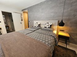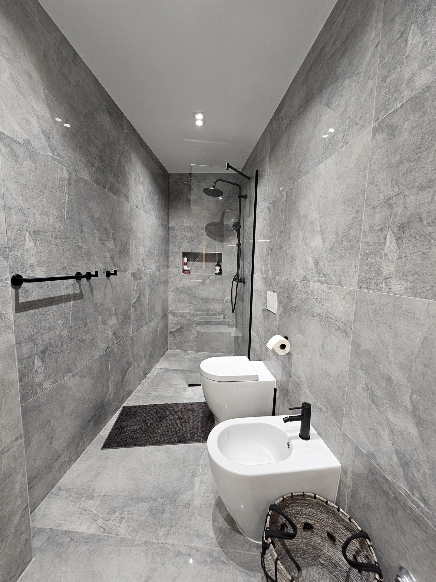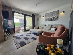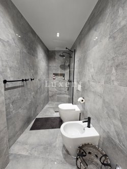 On the ground floor there is a spacious entrance hall, guest bathroom, laundry room, modern kitchen with dining area and an elegant living room with direct access to a covered loggia overlooking the garden and pool. Upstairs there are three bedrooms, the master bedroom has its own bathroom, dressing room and terrace. The other two bedrooms have their own terraces and a shared bathroom. Every detail of the interior is finished to the highest standard, with an emphasis on modern design and functionality.