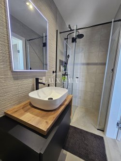 We offer for sale a luxury villa with a heated pool and panoramic sea views, located in the picturesque resort of Muline on the western tip of the island of Ugljan. This new building from 2022 with a living area of 172 m² stands on a plot of 454 m² and is located just 200 meters from the beach with crystal clear sea. The villa is spread over two floors and its southwestern orientation ensures plenty of sun throughout the day.