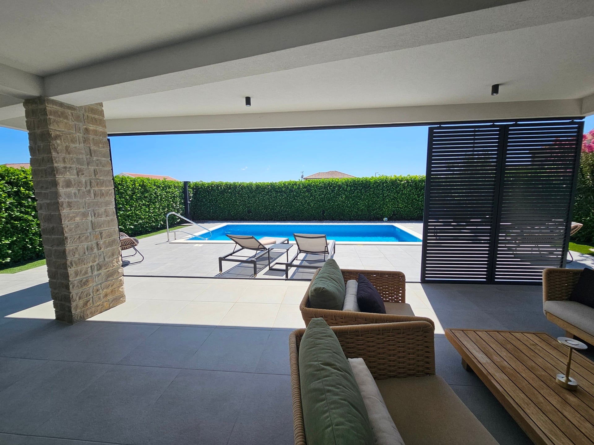 The house has a landscaped garden with a sunny terrace and heated pool, ideal for relaxation and undisturbed privacy. The villa is equipped with underfloor heating throughout and air conditioning in every room, while its A+ energy rating guarantees low running costs.