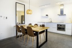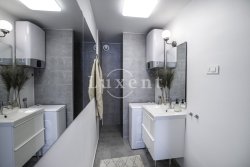 We offer for sale a modern family house in the picturesque town of Rogoznica, situated in an exceptionally attractive location just 150 meters from the sea and the town center. The property is located on a plot of 530 m², which includes a residential building and a parking area. The house is spread over three floors and offers three separate, fully equipped apartments. On the ground floor there is a one-bedroom apartment with a private garden and a covered terrace, on the first floor there is a two-bedroom apartment with a spacious terrace and sea views, and on the top floor there is a luxurious penthouse with two bedrooms, two bathrooms, a large terrace with panoramic sea views and a private gym.