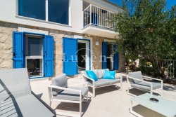 We offer for sale a beautifully renovated house in the first row by the sea, right next to a picturesque bay with a beach. The house has a total living area of 125 sqm spread over two floors and offers charming sea views and private access to the water.