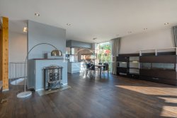 We offer for sale a beautiful stylish two-storey family house 5+kt in Tuchoměřice on a plot of 1135 sqm. The house is located on a hill in a quiet residential location with panoramic views of Tuchoměřice and the surrounding countryside. It was built in 2010 and received a nomination in the Building of the Year competition and also a nomination in the category 'Low energy house for living in wood construction technology'.