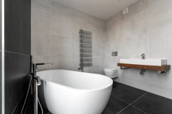 On the 1st floor there is a master bedroom (23.4 sqm) with a bathroom that offers a free standing bath, shower, toilet (7.7 sqm) and a separate dressing room (6.4 sqm). There are also two large bedrooms that have access to the balcony, a study (20.5 sqm), a bathroom (9.4 sqm), a separate toilet, a hallway (22.5 sqm) that also has access to the balcony and the possibility of a pleasant sitting area.