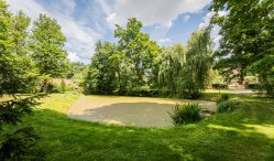 The three and a half hectare park with two ponds is adorned with mature chestnuts, lindens, maples, pines, yews, ash trees, birches, cedars, sycamores, willows, acacias, oaks, beeches, cedars, alders, boxwoods, rhododendrons, ginkgo biloba and zerav giant.