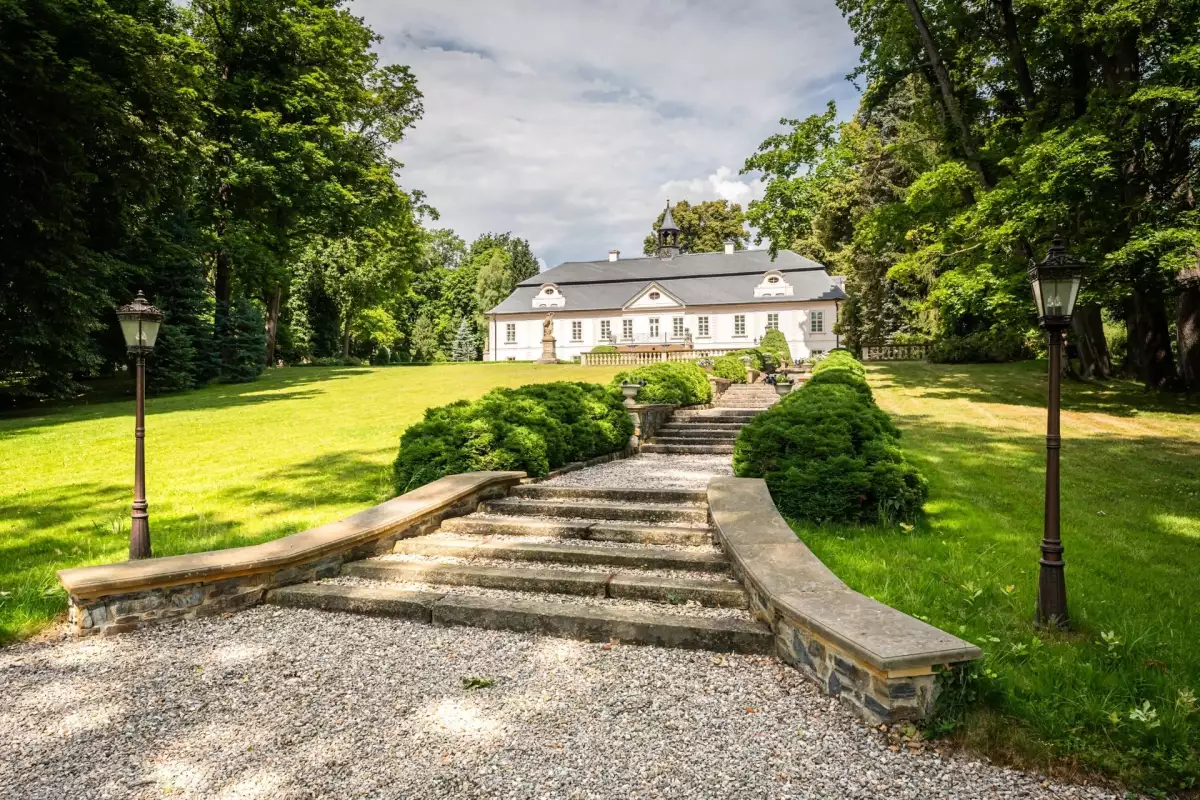 The first building on the site was mentioned in 1318. Reconstruction into a Baroque chateau took place in 1729, another neoclassical reconstruction in 1873 and the last reconstruction in 2005-2009. The castle is ready for private housing and company headquarters. The mansion has four bathrooms, a stair hall and 17 rooms. The interior floor plans have been returned to their original state (1729). There are no corridors and one can walk freely from one room to another. The arrangement of the rooms has a logical continuity according to use. The enfilade has been restored on the 2nd floor.