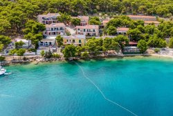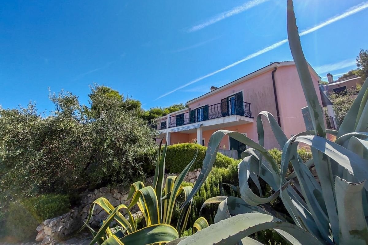 We offer for sale an apartment house spread over two floors, each offering two separate apartments. The current layout is ideal for tourist use, but with minimal modifications, the property can be converted into a comfortable family villa – for example, with living areas on the ground floor and bedrooms upstairs. The main terrace, with an area of 85 m², offers unobstructed views of the sea and the bay. In front of the house is a large 180 m² garden, which ensures privacy and blends in with the surrounding natural environment.