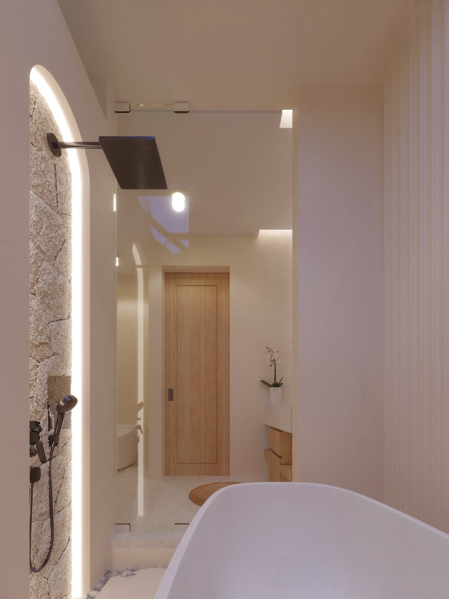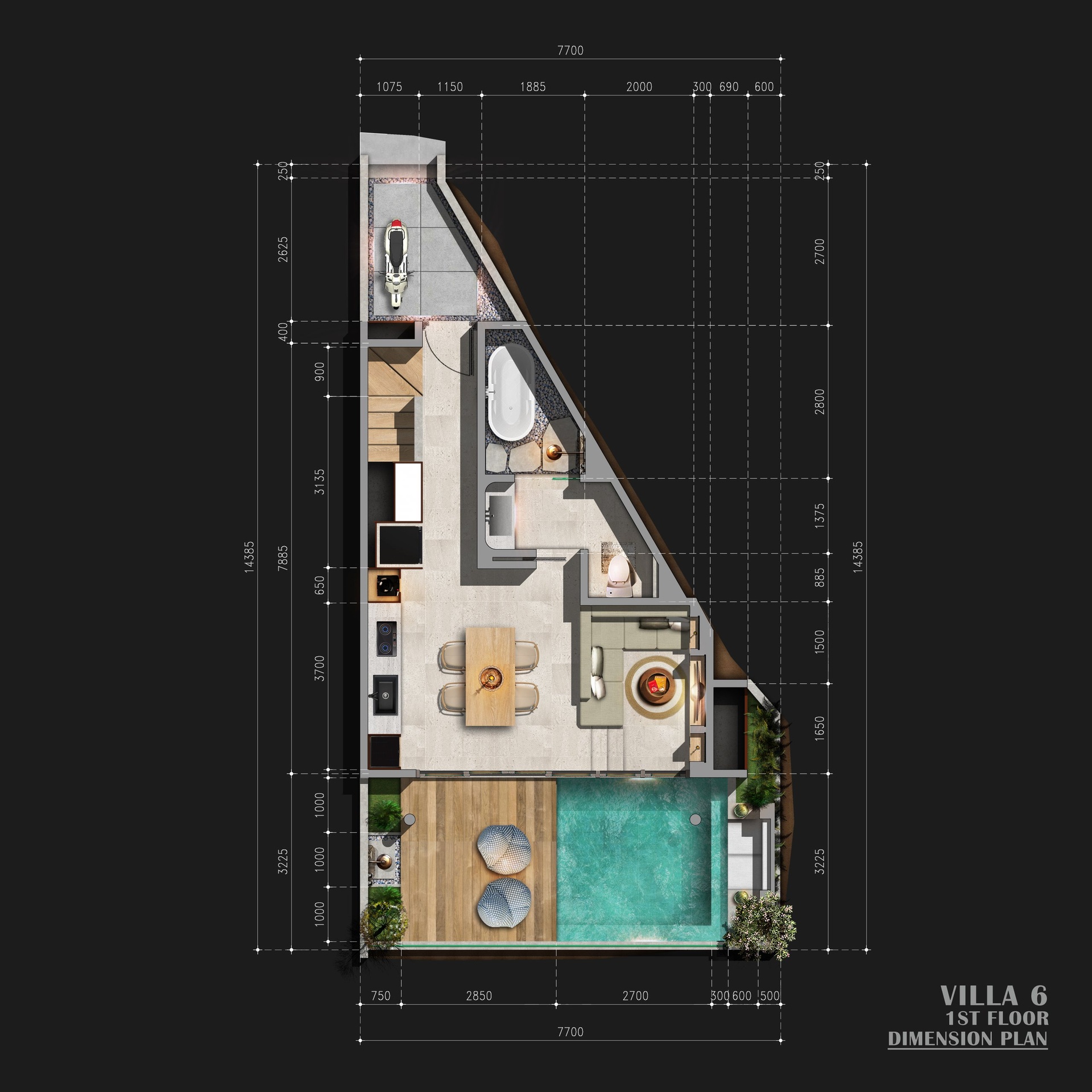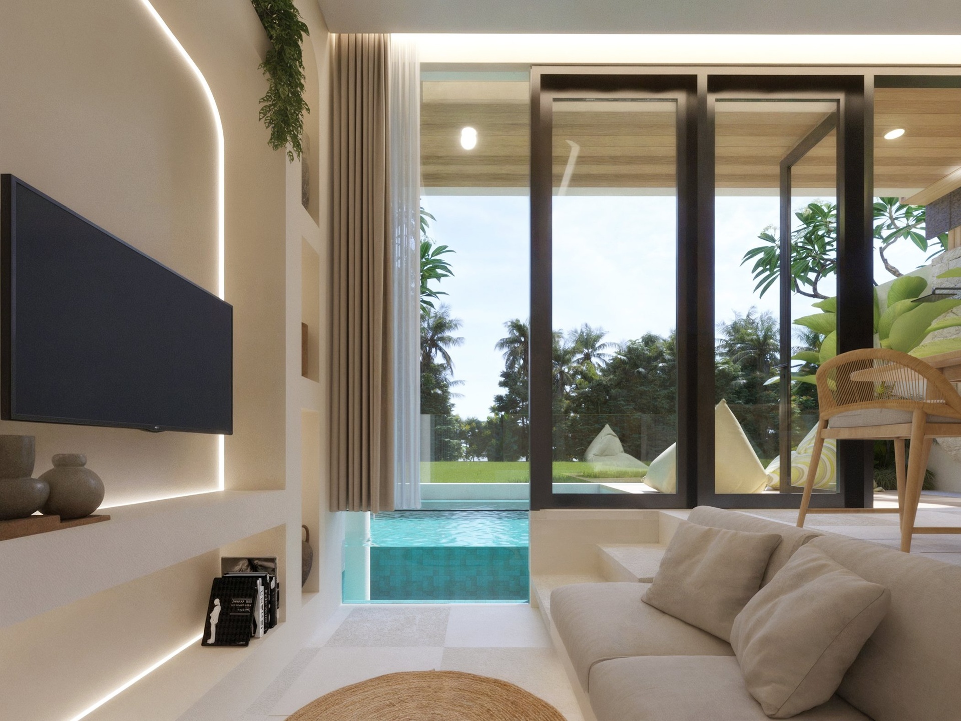 The project is designed as an investment property optimized for rental, with an emphasis on high-quality materials suitable for a tropical climate (e.g., travertine, teak wood, or Green Sukabumi stone) and long-term operational sustainability.