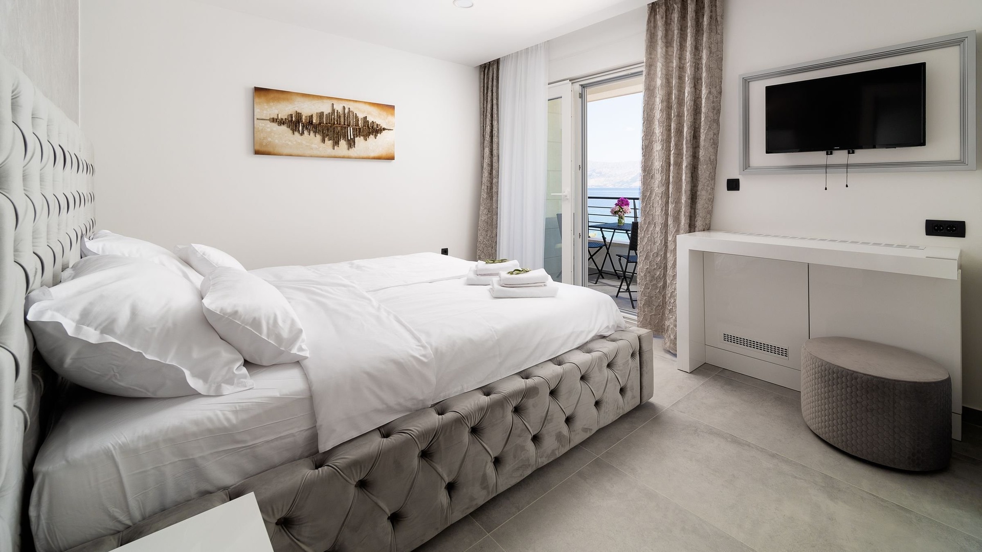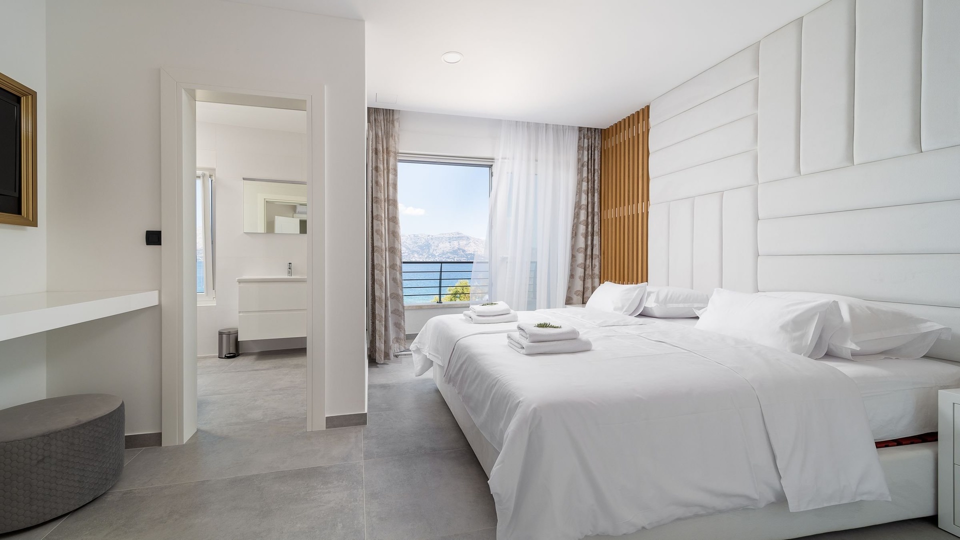 The villa was built on three floors and its interiors and exteriors were designed with an emphasis on comfort, elegance, and connection with the surrounding nature. It offers a total of five spacious bedrooms and six bathrooms, which are arranged so that each guest has plenty of privacy. There is also a fully equipped gym, a recreation room, a modern kitchen with a living area, and several balconies and terraces—both covered and open—ideal for relaxing and dining with a view of the sea.