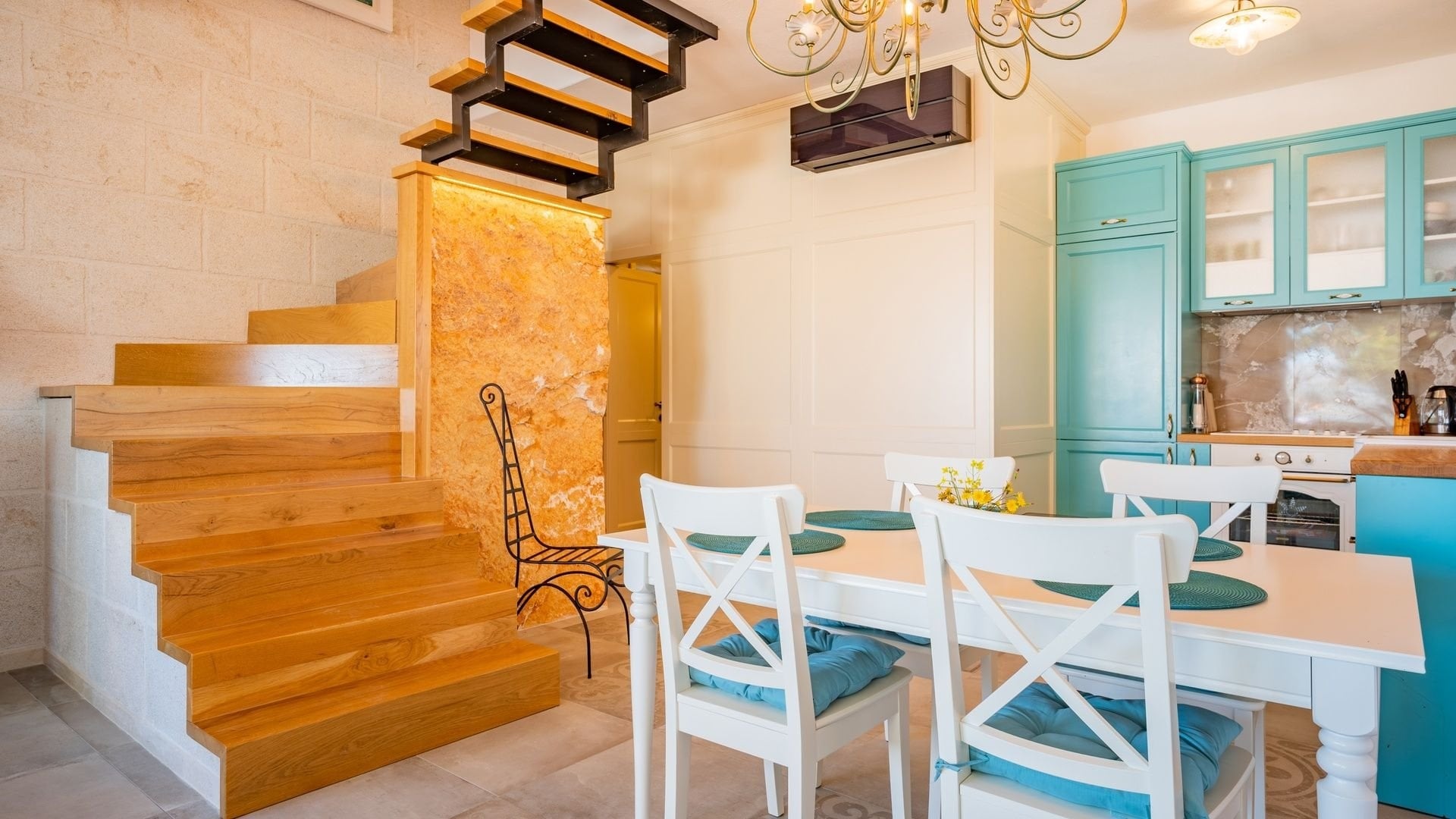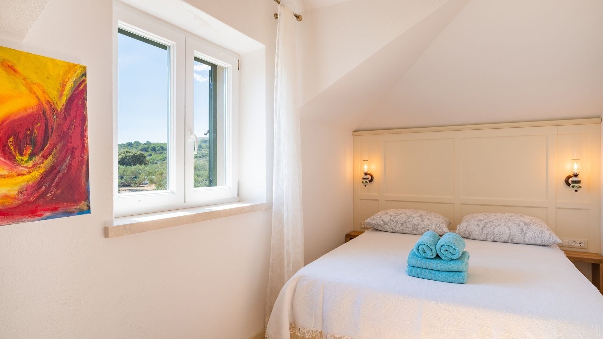 Upstairs, there are two elegantly furnished bedrooms and a modern bathroom with a hydromassage bathtub. The interior has been designed with attention to detail, combining modern elements with traditional Dalmatian style, ensuring maximum comfort and enjoyment.