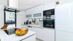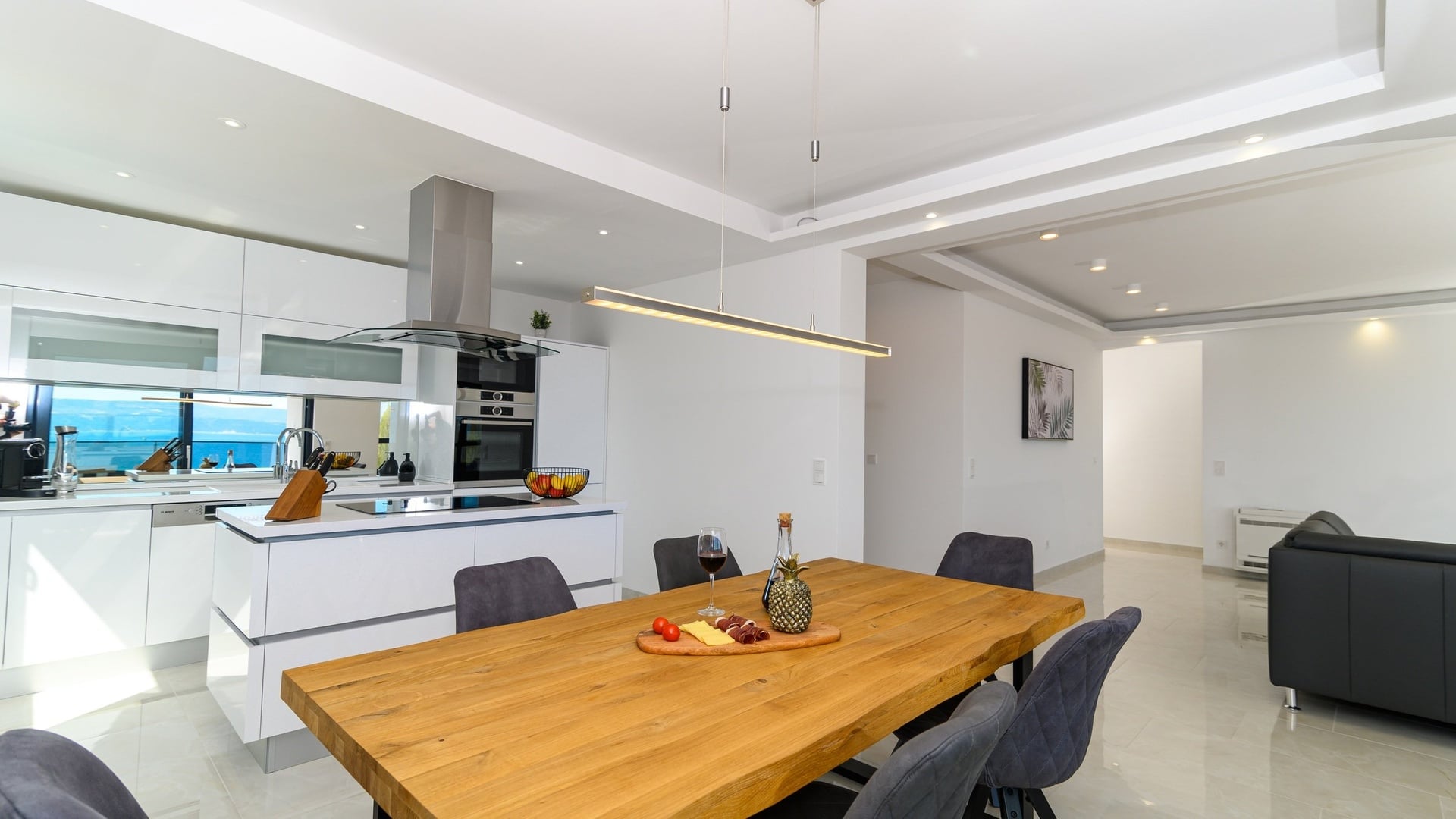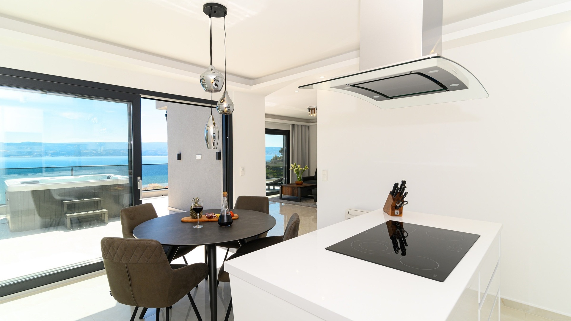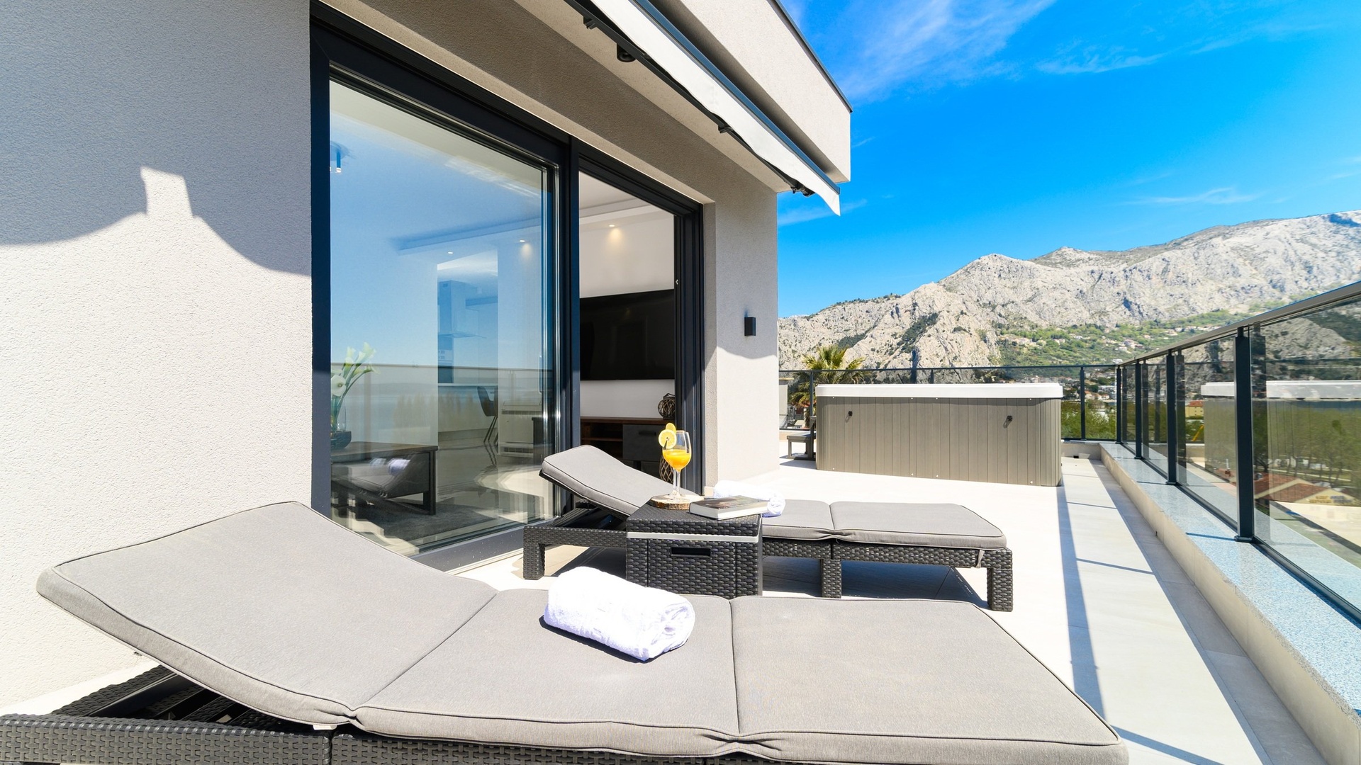 The fourth floor is occupied by a luxurious penthouse with a spacious terrace and a hot tub, ideal for private relaxation with completely unobstructed views of the sea horizon.